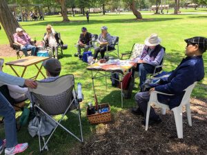 24 intrepid members gathered for what turned out to be a very pleasant picnic in the park. All enjoyed the day.