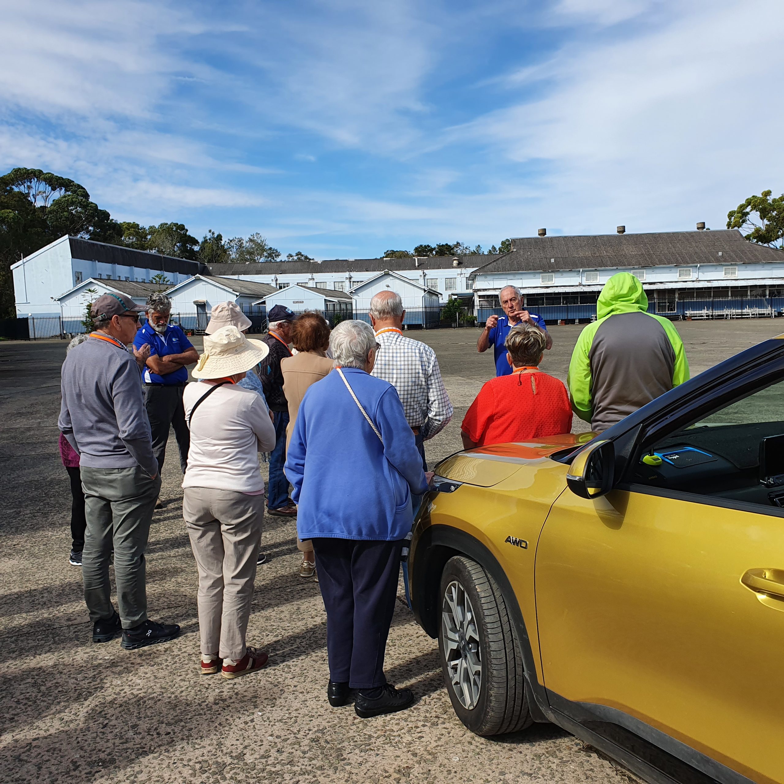 Under skies that threatened showers after lunch, all participating vehicles and their crews managed a successful departure with a correct left turn out of the stadium. However, the scrutineers (Beryl and I) had a ‘hand in mouth’ moment when one of the participating vehicles headed off from the carpark in the opposite direction, only to correctly turn left from another exit from the stadium precinct – whew!, a clean and successful start.