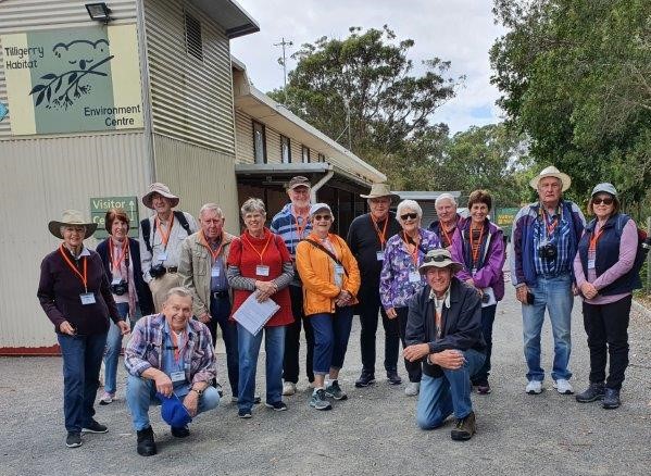 A morning tea/meeting stop at McDonalds, Williamtown enabled the group to gain a caffeine fix before assembling in a convoy for the drive to Tanilba Bay where the Tilligerry Habitat is located. Without losing anyone enroute, all those attending gathered for a group photo before checking out the headquarters, talking with the volunteers and gathering a map, ready for their ‘nature exploration’.